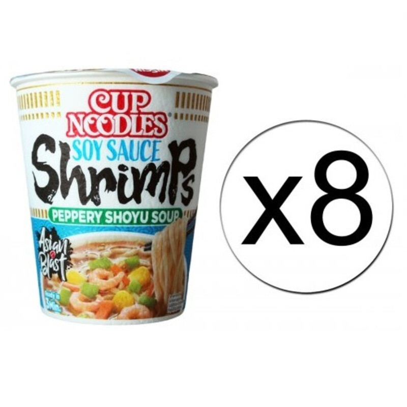 NISSIN Nouilles instantanées - Sauce soja et crevettes - 8 Bols x 63 g - 1 Carton