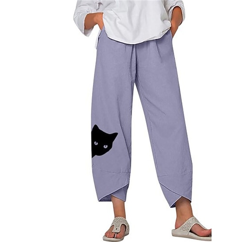 Per donna Misto cotone Pantaloni in cotone e lino Chinos Streetwear Semplice Casual Lunghezza alla caviglia Misura del girovita medio Gatto Baggy Stampato Morbido All'aperto Confortevole