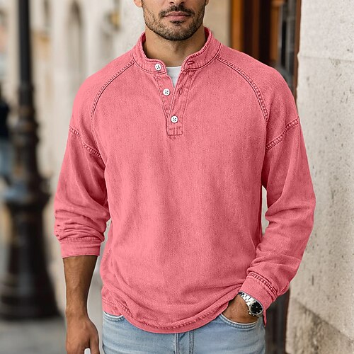 Da uomo Camicia 100% cotone lavaggio acido Maglietta Manica Corta Collo alla coreana Primavera Autunno Autunno Inverno Semplice Vintage Streetwear Casual Con zip Base Casuale Casa Streetwear Blu