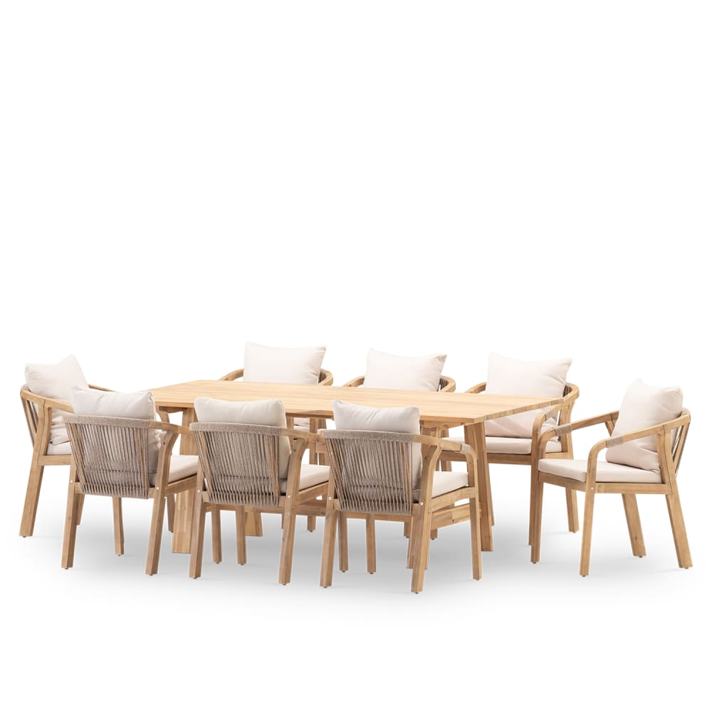 Tavolo e sedie da giardino per 8 persone in teak, resina intrecciata