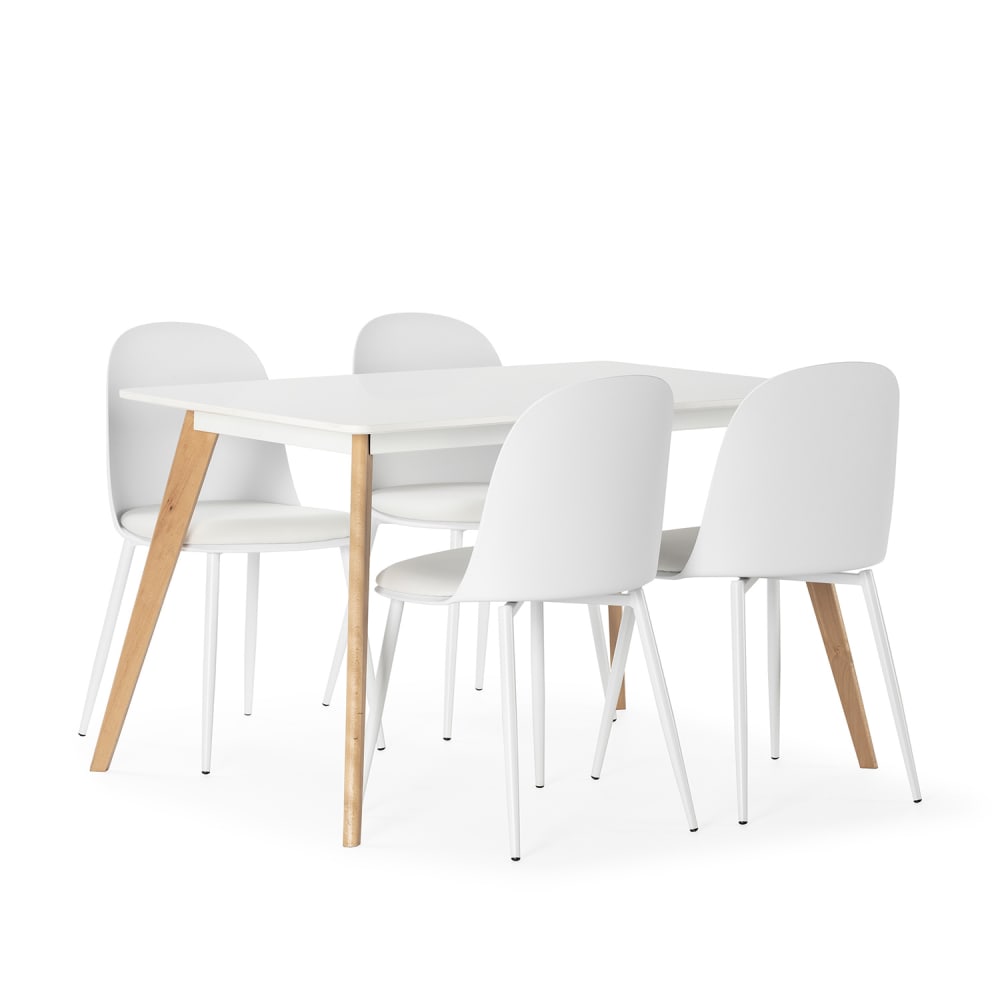 Set tavolo 120x80 cm e 4 sedie da pranzo Bianche