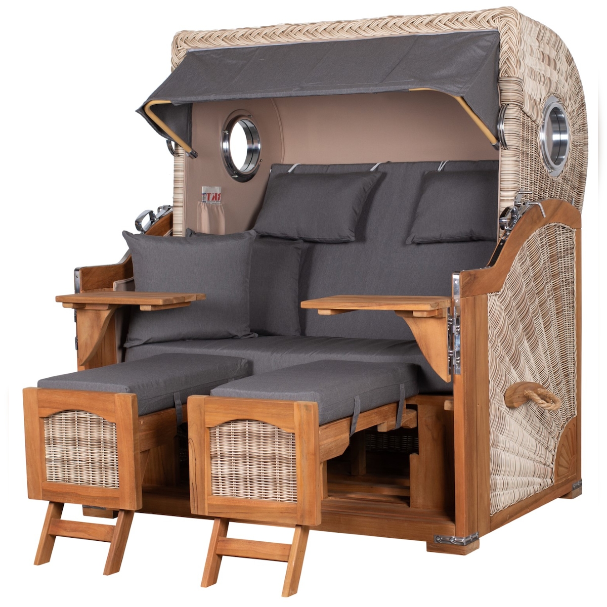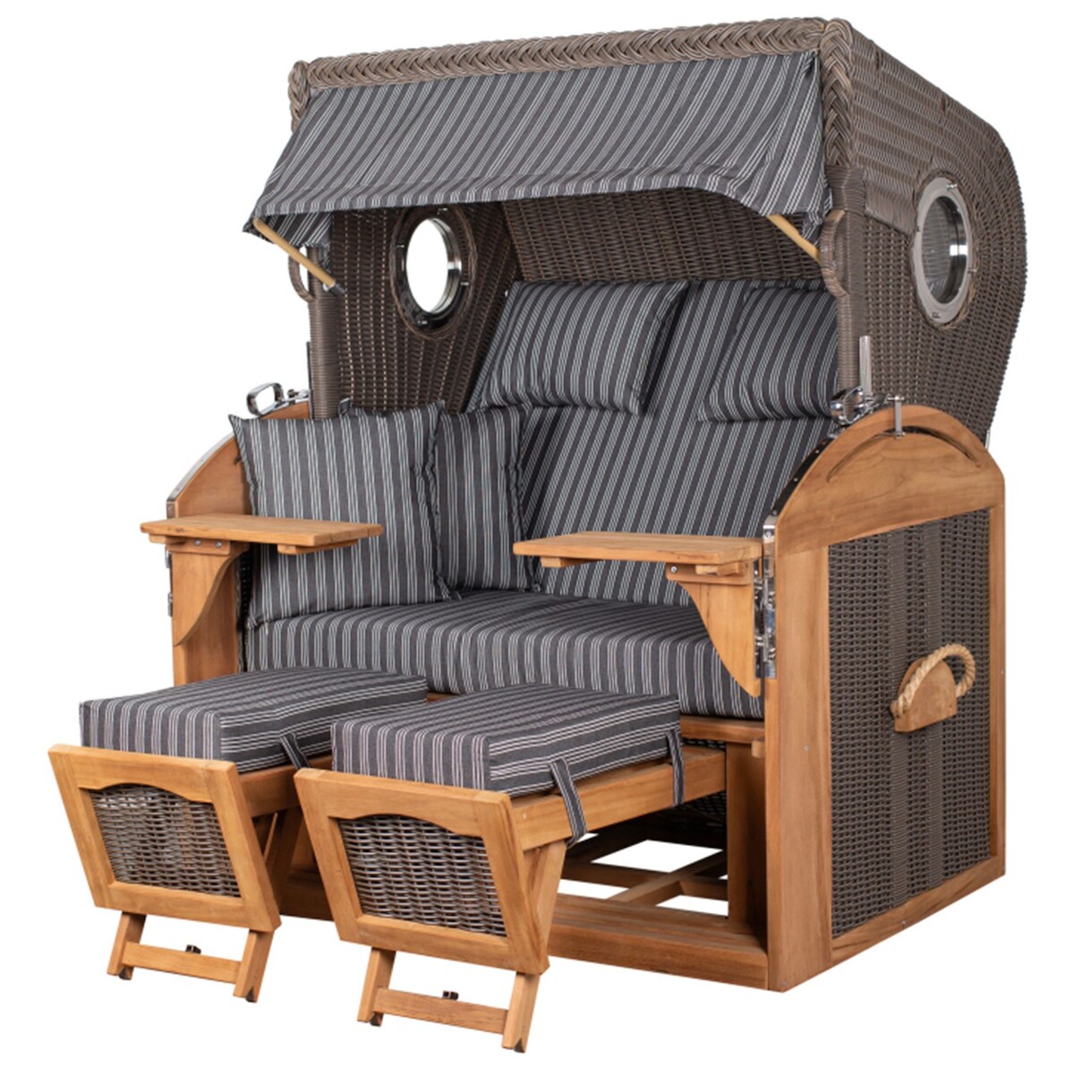 Mr. Deko Strandkorb - bene living - Ammersee Teak Bullauge - PE grau - Modell 548 - inkl. Liftersystem