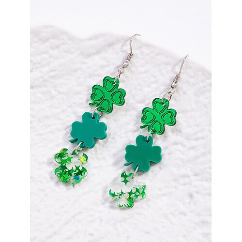 orecchini pendenti in acrilico a forma di trifoglio per il giorno di San Patrizio da donna, orecchini pendenti leggeri a forma di trifoglio glitterato, gioielli verdi irlandesi multi-stile per donna, perfetti per sfilate natalizie, feste e...