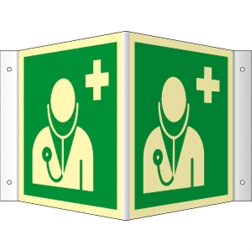 Winkelschild Arzt, ISO 7010, Kunststoff, nachleucht., 160-mcd, 200x200 mm