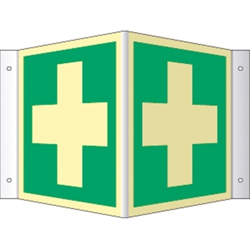 Winkelschild Erste Hilfe, ISO 7010, Kunststoff, nachleucht., 160-mcd, 200x200 mm