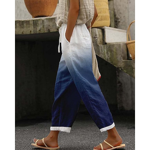 Per donna Pantaloni in cotone e lino Pantaloni Leggero Casual Lunghezza intera Vita media Blocco di colori Tasca Coulisse Traspirabilità Confortevole Inelastico Casual Quotidiano Weekend Azzurro Rosa