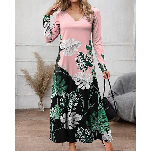 Per donna Vestito longuette Abito casual Vestito svasato Abito linea A Abito boho Informale Da mare Giornaliero Standard Floreale A foglia Manica a 3/4 Collo diviso Rosa Blu Viola Autunno