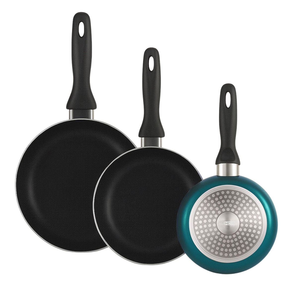 WellHome - Set mit 3 Ø16/20/24cm Pfannen aus gepresstem Aluminium in Metallicblau