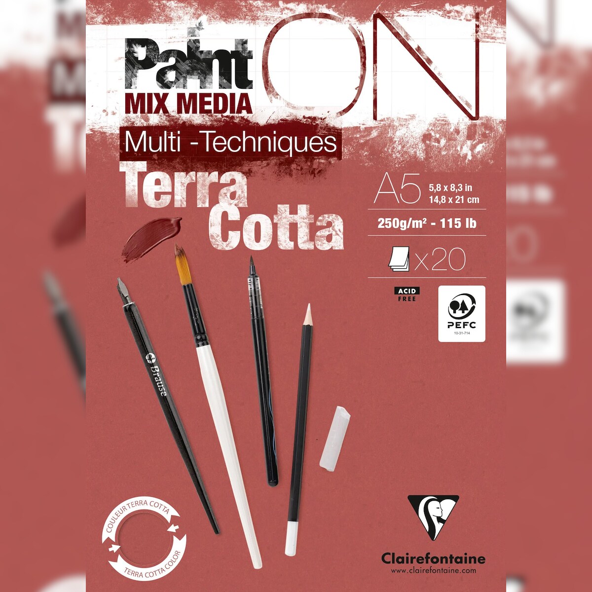 Clairefontaine 4x PaintON Terracotta, Block A5, kopfseitig geleimt, 20 Blatt 250g, Mixed Media - 976152C