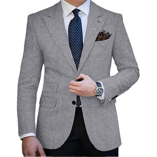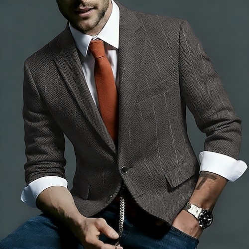 Per uomo Blazer in Tweed Collare di chiusura Retrò Vintage Spina di Pesce Blazer Marrone Kaki Grigio scuro Taglie Forti Monopetto Due Bottoni