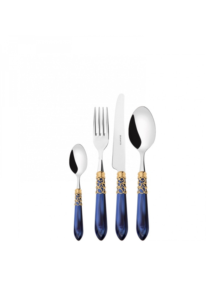 melodia goldlünette, blauer griff, 24-teiliges stahlbesteckset, galeriebox, casa bugatti
