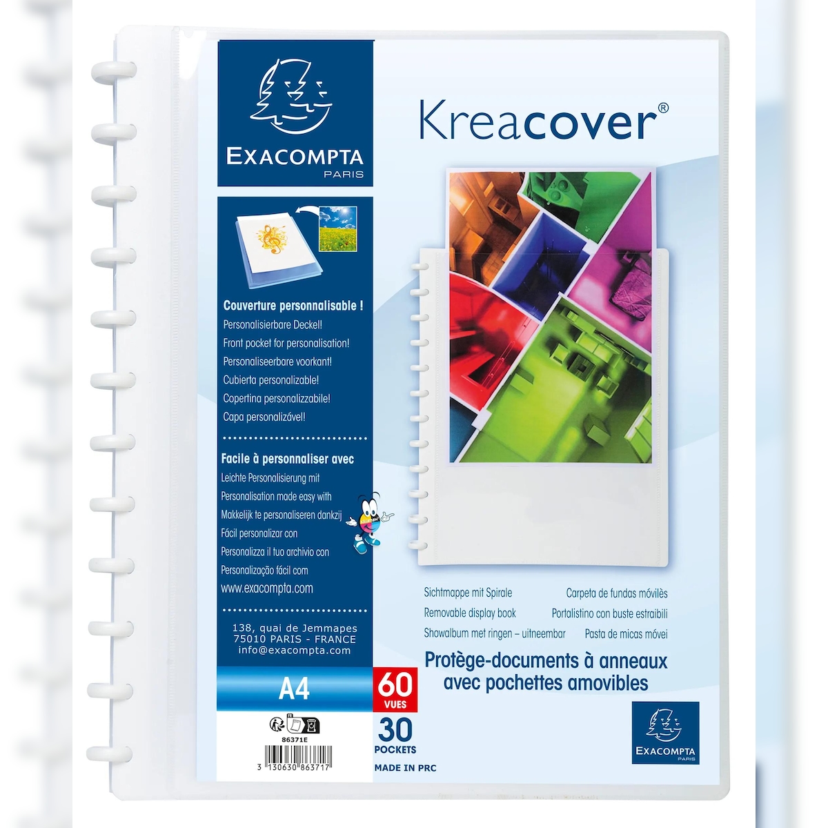 Exacompta 86371E 4x Sichtmappe aus PP 800µ, 60 herausnehmbare Hüllen, 24x32cm für DIN A4 - Weiß