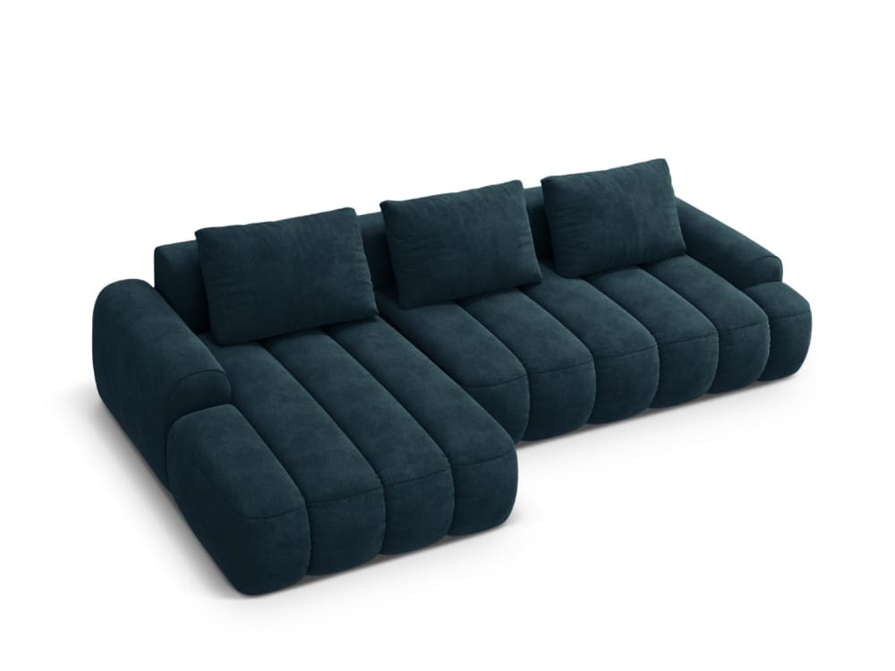 Canpé-lit d'angle gauche avec coffre 3 places velours pétrole profond