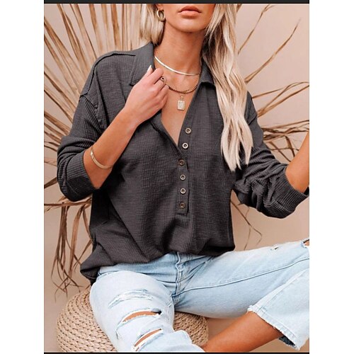 Per donna Camicia Blusa Tinta unica Essenziale Casual Manica Lunga Collo a V Top Regolari Quotidiano Nero Vino Autunno Inverno