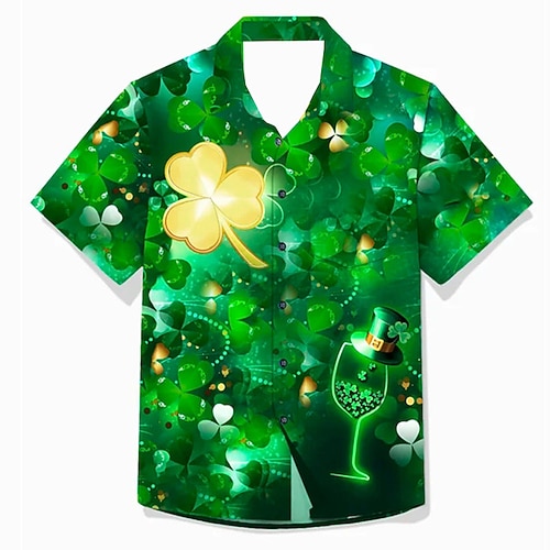festa di san patrizio quadrifoglio camicia casual da uomo abbigliamento quotidiano per uscire nel fine settimana estate couverture maniche corte blu, verde scuro, verde s, m, l camicia in tessuto