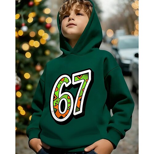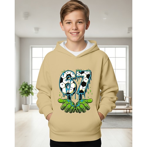 Ragazzi 3D Grafico Calcio Gergo divertente 67 Felpa con Cappuccio Maglione Manica Lunga Stampa 3D Primavera Autunno Sport Moda Streetwear Bambini 4-12 Anni Con cappuccio All'aperto Casuale Quotidiano