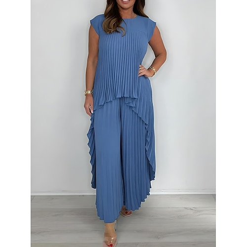 Per donna Camicia Senza Maniche Pieghettato Casuale Quotidiano Blu Nero Bianco Estate