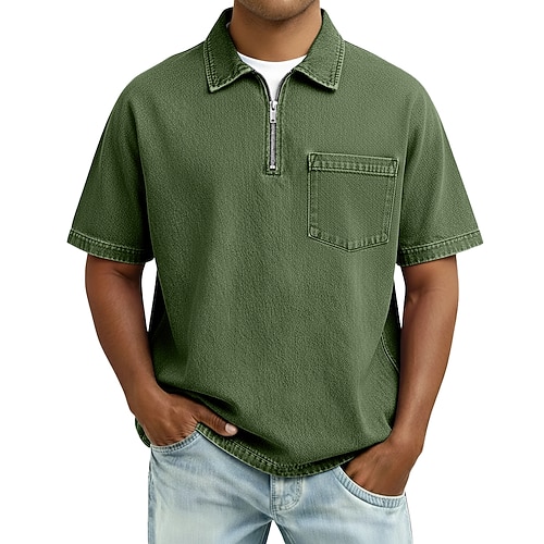 Per uomo Polo in Cotone Maglia da golf Abbigliamento quotidiano Data Zip a un quarto Manica Corta Moda Essenziale Semplice Cerniera Tasca Estate Primavera Primavera Estate Vestibilità regolare