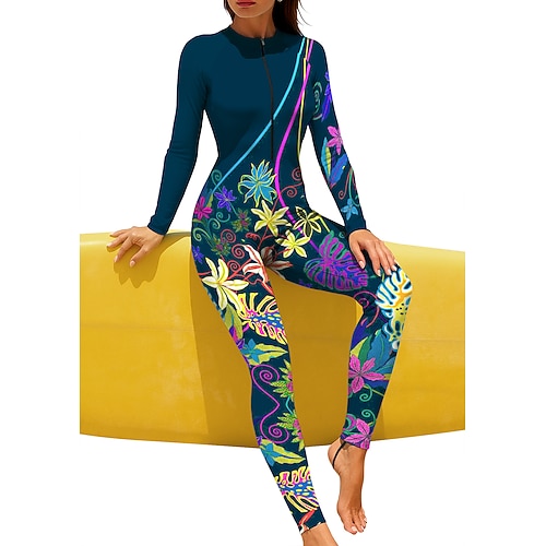Per donna Top sottomuta Rash Guard completo per il corpo Costume da surf intero Floreale Tropicale Protezione Solare UV Coppa larga UPF50 Manica Lunga Integrale Costume da Bagno Body Con zip con