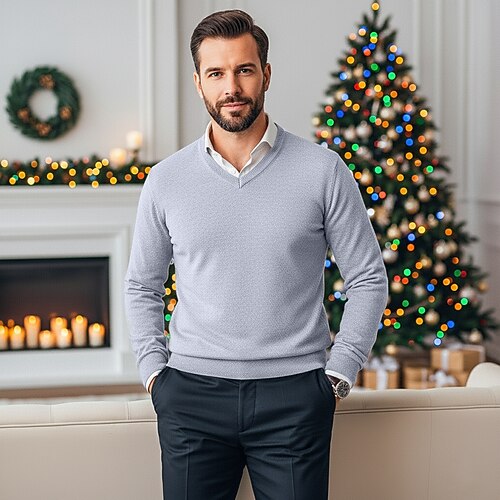 Per uomo Felpa Maglione di lana Maglione A Coste Maglia Corto Lavorato a maglia Tinta unica Scollo a V Tenere al Caldo Moderno Contemporaneo Natale Lavoro Abbigliamento Autunno Inverno Blu Cammello