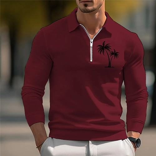 Per uomo Palma Polo Manica Lunga Collo ripiegato Vacanza Tempo libero Athleisure Casual Quotidiano Cerniera Stampa 3D Primavera Autunno Inverno blu navy Grigio Bianco