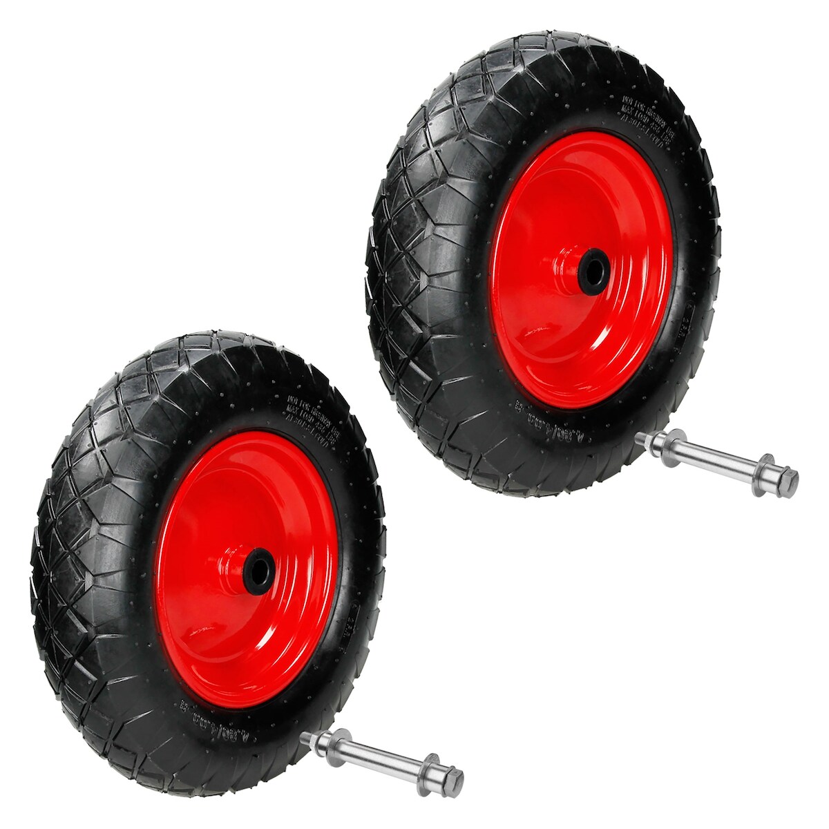 ECD Germany Schubkarrenrad 2er Set luftbereift 4.80/4.00-8 Ø390 mm, 200 kg, Reifen mit Stahlfelge Rot, Ersatzrad für Schubkarre