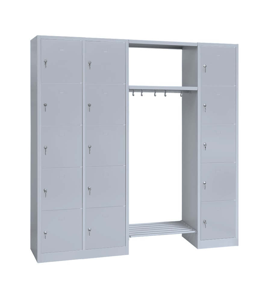 Lüllmann® Garderobe, 2 Abteile links, 1 Abteil rechts, je 5 Fächer, 1800 x 1915 x 500 mm, lichtgrau