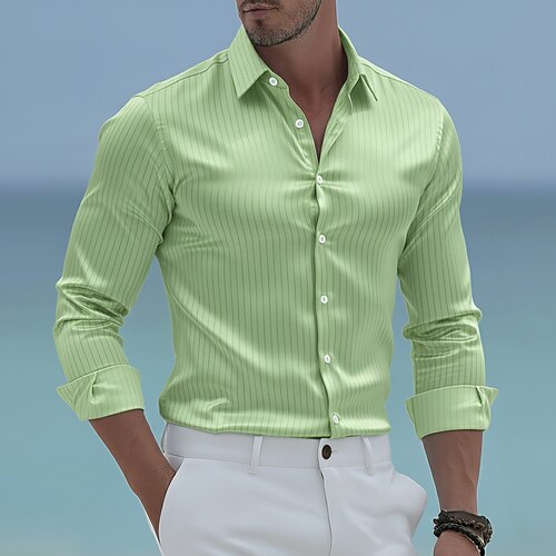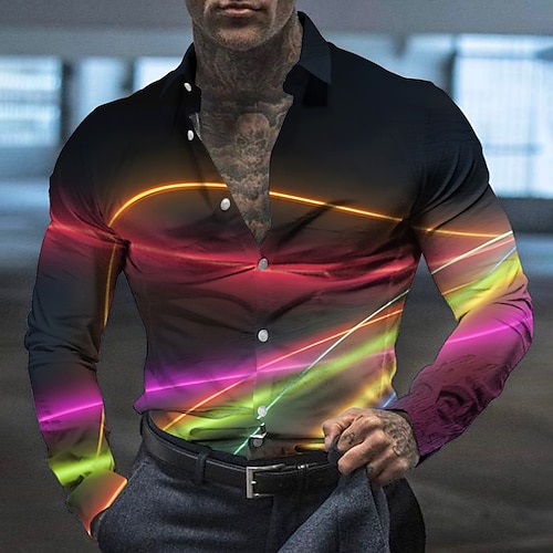 Per uomo A righe Motivo Geometrico Camicia Camicia in raso Camicia elegante Manica Lunga Business Casual Vacanza Abbigliamento Quotidiano Estate Primavera Autunno Collo ripiegato Stampa 3D Camicie