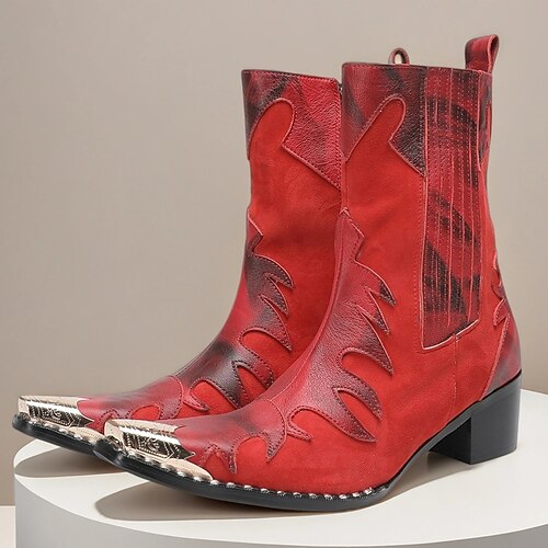 stivali da cowboy da uomo in vera pelle rossa – stivali da equitazione western con motivo a fiamma per festival, spettacoli teatrali e feste in campagna