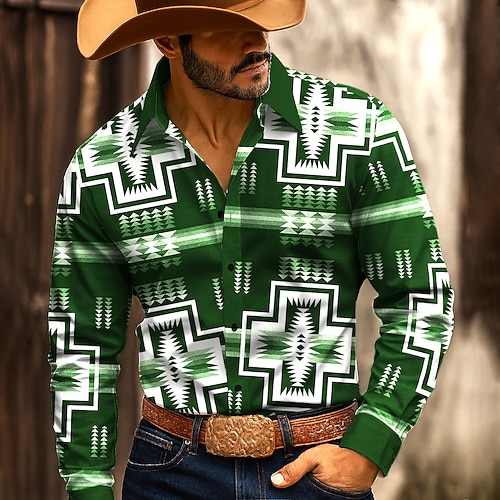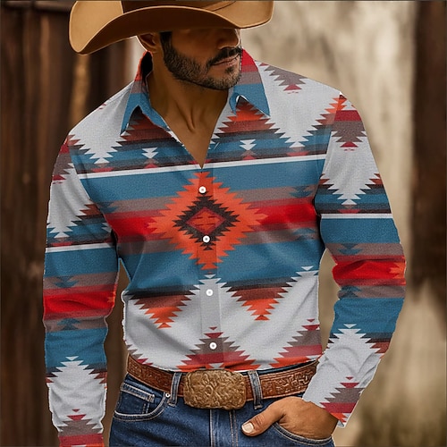 Per uomo Azteco Motivo Geometrico Etnico Camicia Camicia Western Camicia da cowboy Manica Lunga Vintage Retrò All'aperto Casuale Abbigliamento da lavoro Primavera Autunno Collo ripiegato Stampa 3D