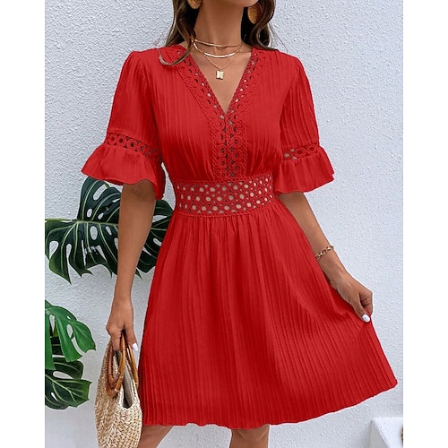 Per donna Abito Midi Abito nero Vestito da Festa Elegante Moda Moderno Ufficio Cocktail party Vestibilità regolare Semplice Manica Corta Scollo a V Blu Nero Rosso Verde Primavera Autunno Inverno