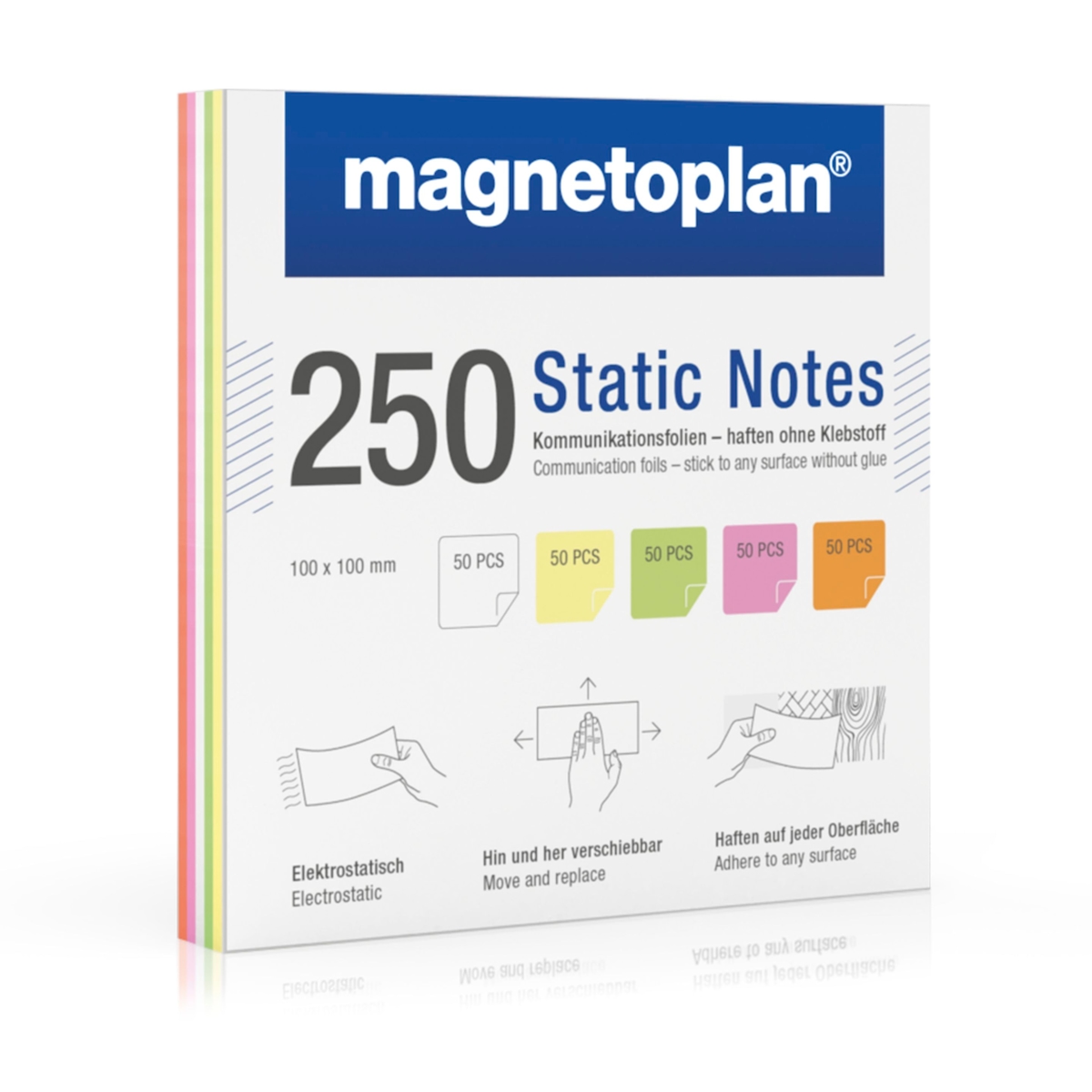 magnetoplan Static Notes, 100x100mm 250 Stück sortiert