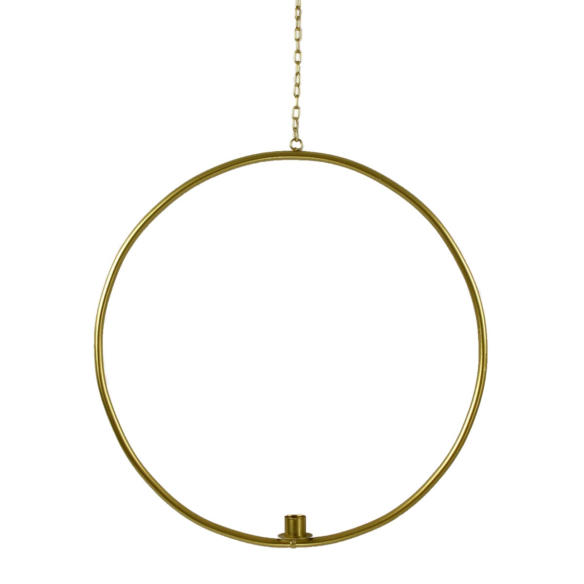 Deko-Ring Hoop z. Hängen m. Stabkerzentülle, gold, D.43 cm