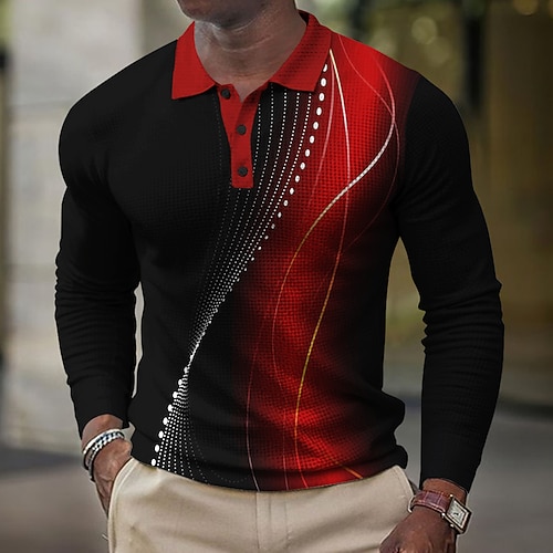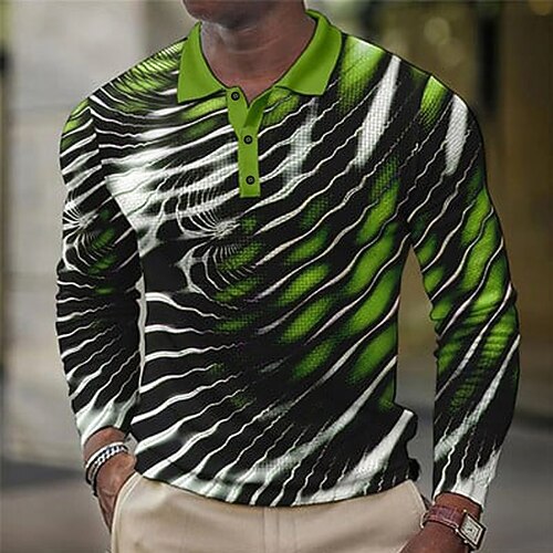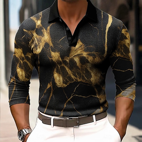 Per uomo Magliette Polo a Nido d'Ape Maglia da golf Manica Lunga Magliette polo Camicie con Colletto Casual Business Casual Abbigliamento Quotidiano Athleisure Bottoni Stampa 3D Primavera Autunno