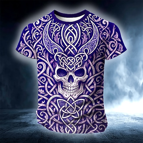 Per uomo Teschio 3D Celti Maglietta Manica Corta maglietta Stampa 3D Girocollo Camicia Vichingo Designer Feste Streetwear Casuale Blu Viola Verde Estate Primavera Abbigliamento S M L XL XXL XXXL