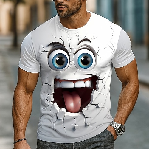 Per uomo Illusione ottica 3D Emote divertenti Maglietta Manica Corta maglietta Stampa 3D Girocollo Camicia Esagerato Designer Feste Quotidiano Ferie Bianco Viola Estate Primavera Tutte le stagioni