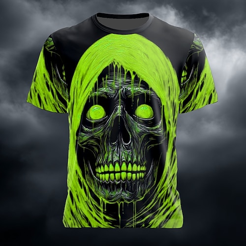 Per uomo Teschio 3D Maglietta Manica Corta maglietta Stampa 3D Girocollo Camicia Esagerato Designer Orrore Feste Streetwear Casuale Rosso Blu Verde Estate Primavera Tutte le stagioni Abbigliamento S