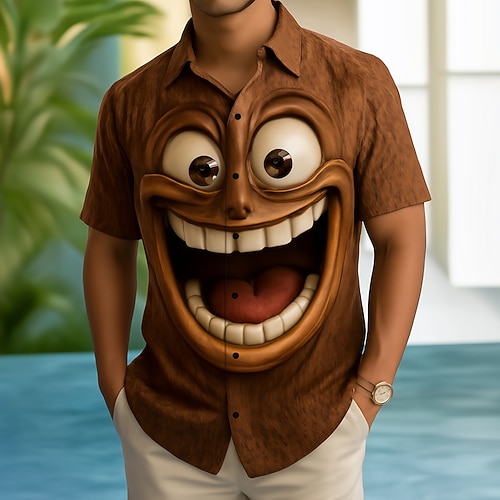 Per uomo Frutta Fantasia Cartone 3D Faccia Sorridente Camicia Camicia con Bottoni Manica Corta Gotico punk oscuro Ferie Estate Primavera Collo ripiegato Stampa 3D camicie con colletto Giallo