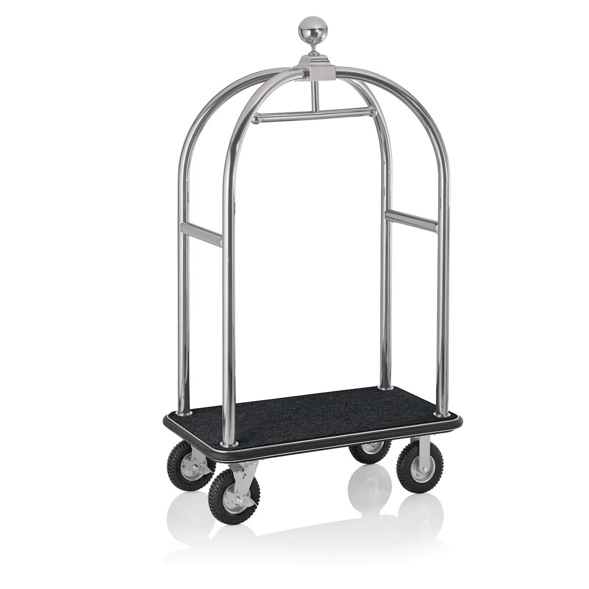 WAS Germany - Gepäckwagen, 113 x 62 x 191 cm, silberfarben gebürstet, schwarzer Teppich, Edelstahl