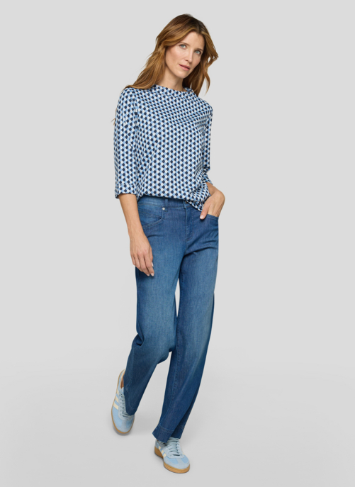 Langarmshirt RABE, Damen, Gr. 48, blau (marine), Jersey, Obermaterial: 95% Viskose, 5% Elasthan, bedruckt, gerade hüftbedeckend, Rundhals, gerader Abschluss, Shirts Langarmshirt, mit Allover-Print und Stehkragen