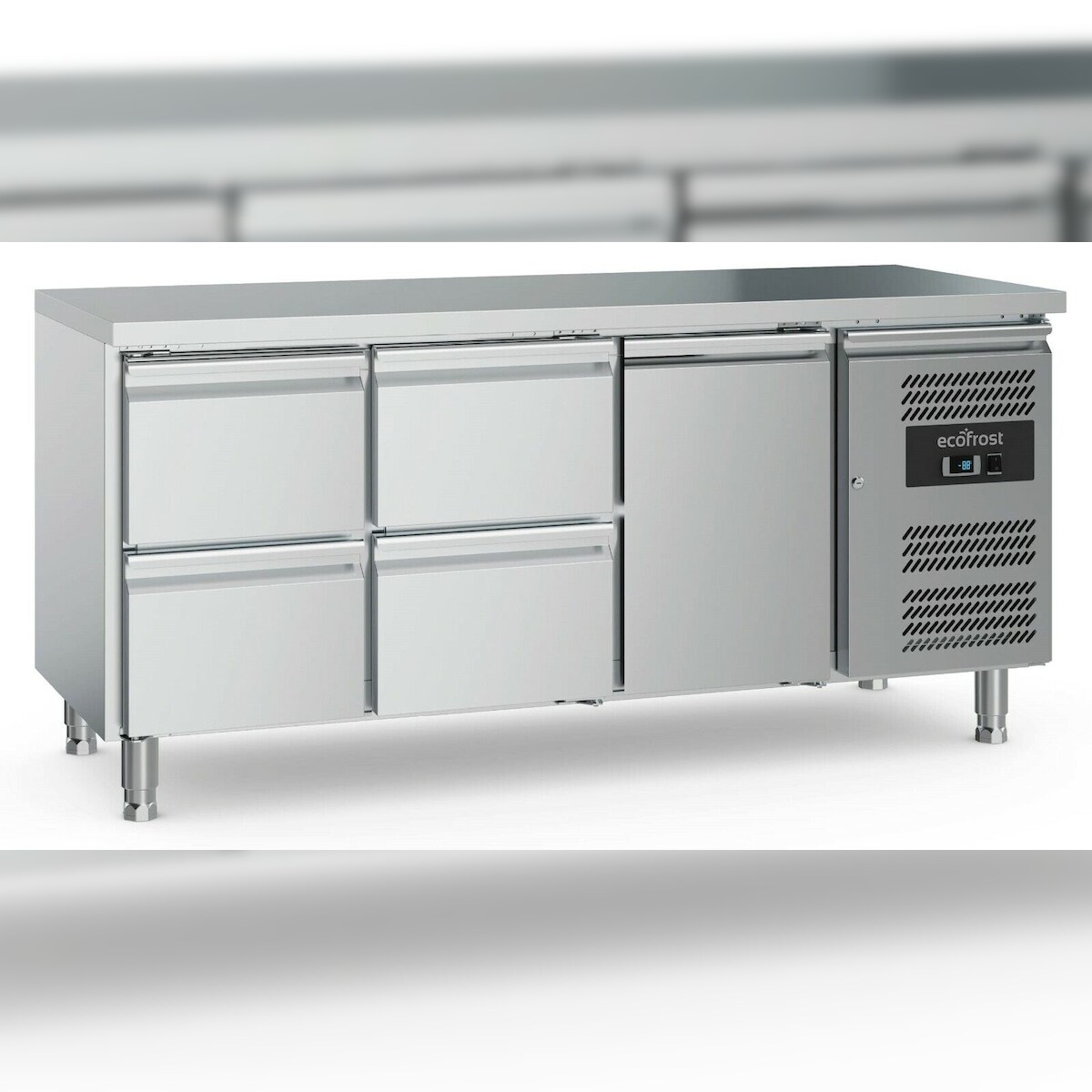 GROJU Gastro Kühltisch Kühltheke 1 Tür, 4 Schubladen, 1795x700x850mm 417l +2/+8°C