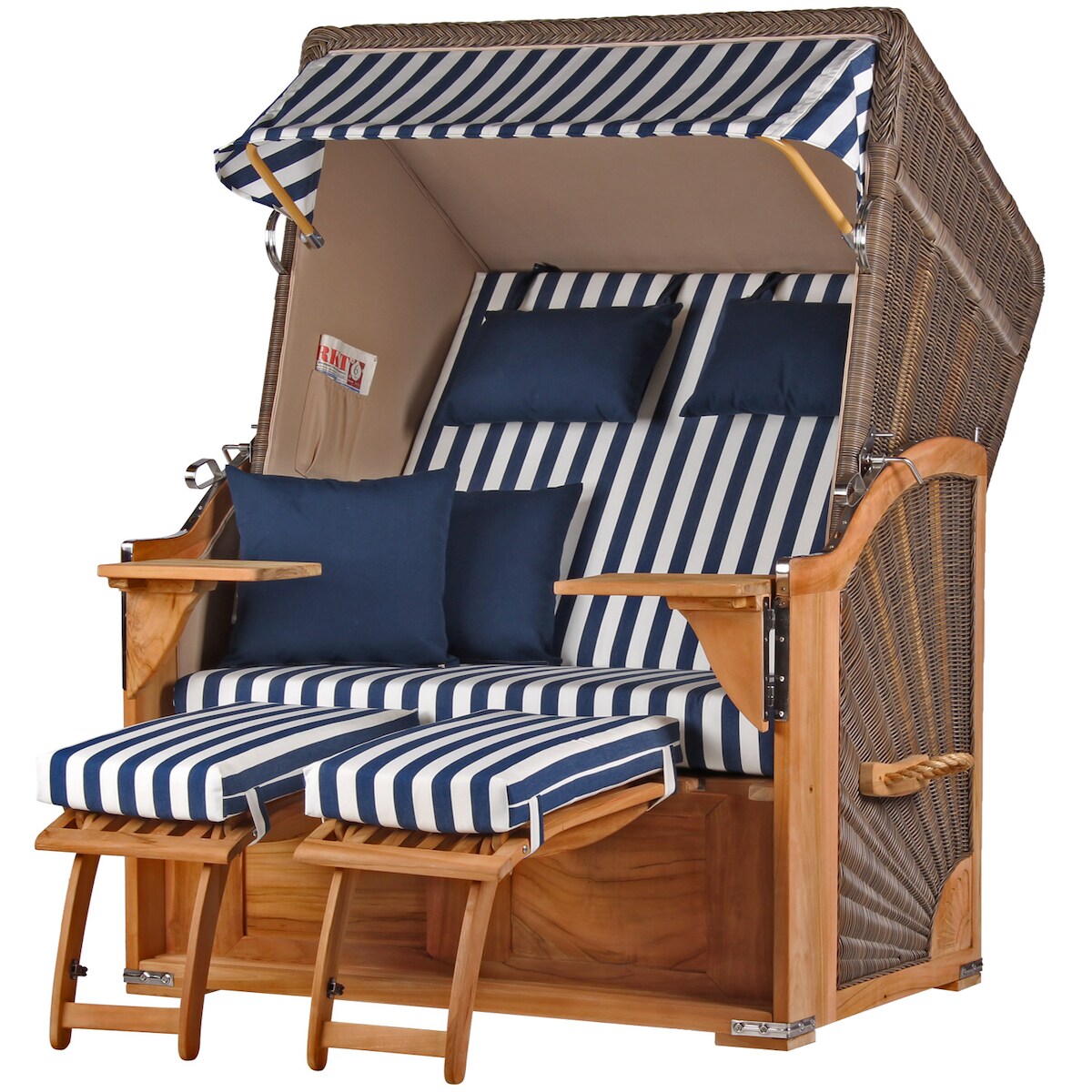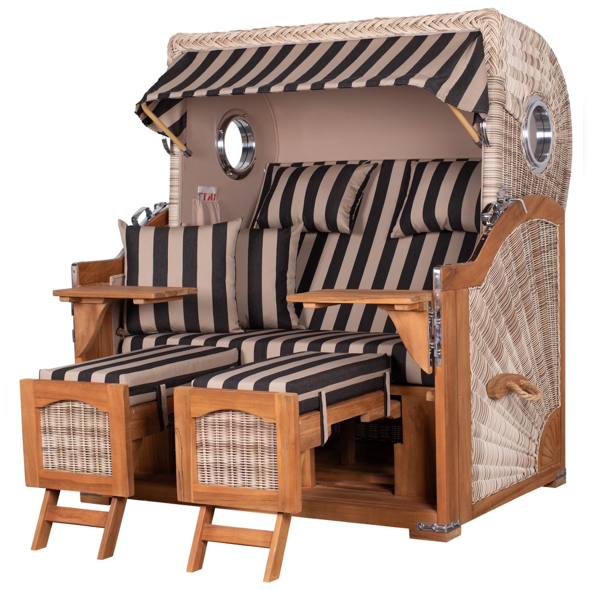 Mr. Deko Strandkorb - bene living - Königssee Dreisitzer Teak Bullauge - PE shell - Modell 582 - inkl. Liftersystem