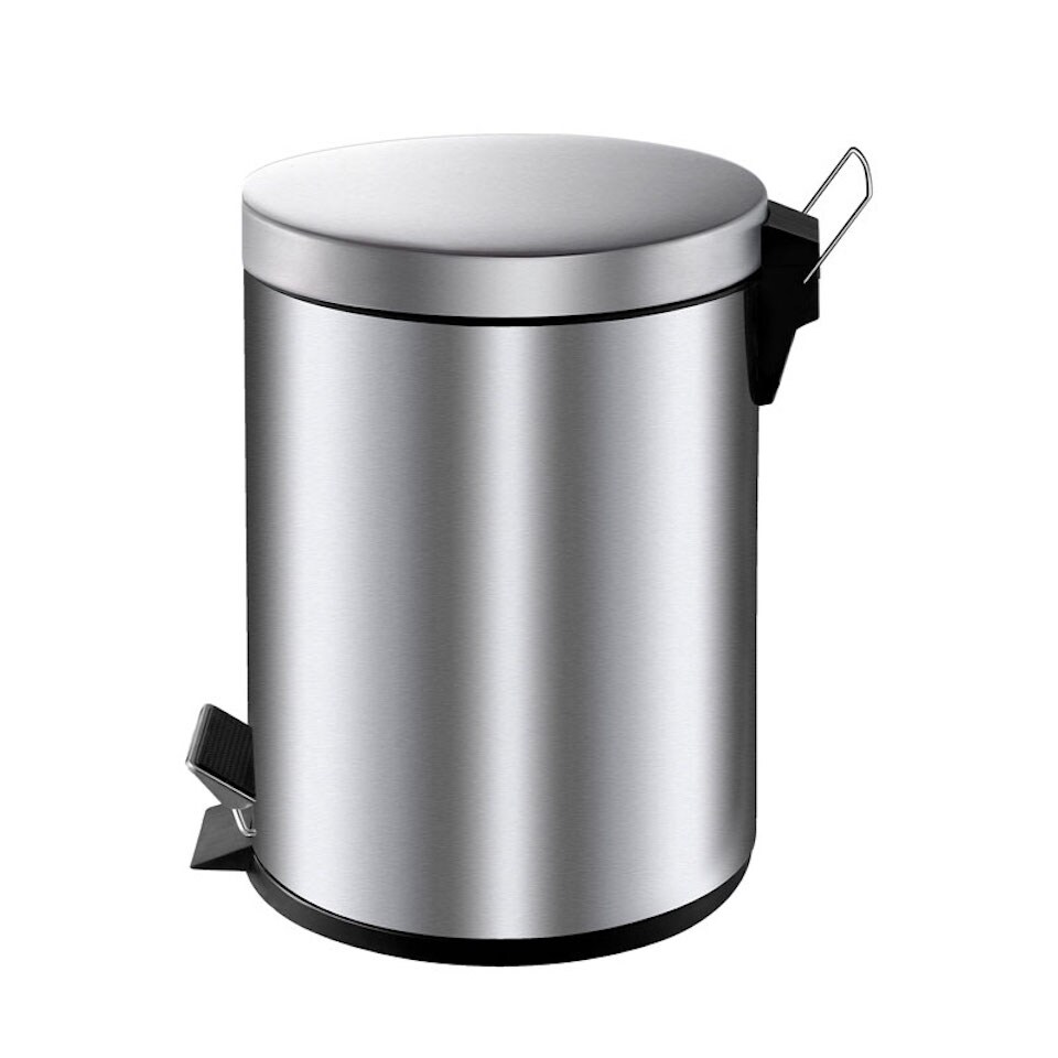 PROREGAL Runder Tretabfallsammler mit herausnehmbaren Kunststoff-Inneneimer | 5 Liter, HxBxT 28,4x24,5x20cm | Matt Silber