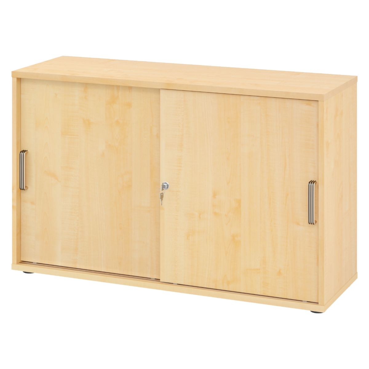 bümö Schiebetürenschrank 2OH - Aktenschrank abschließbar, Sideboard Schrank mit Schiebetüren in Ahorn, Streifengriff - Büroschrank aus Holz mit