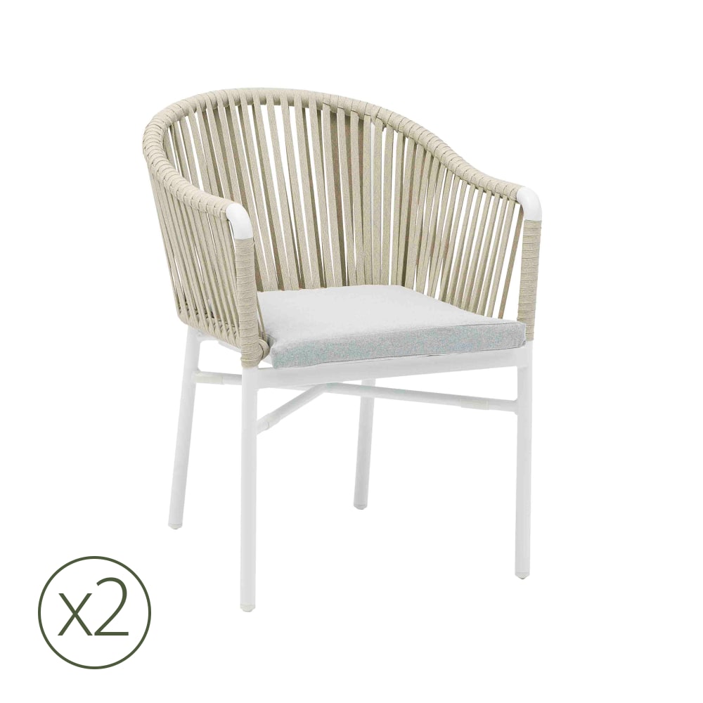Set di 2 sedie in alluminio bianco e corda grigia con cuscino