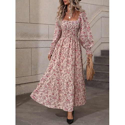 Per donna Abito Midi Vestito Estivo Abito a trapezio Vacanza Casual Boho Uscire Spiaggia Vestibilità comoda Floreale Grafico Geometrico Manica Lunga Scollo a V Rosa Marrone chiaro Blu Verde Primavera