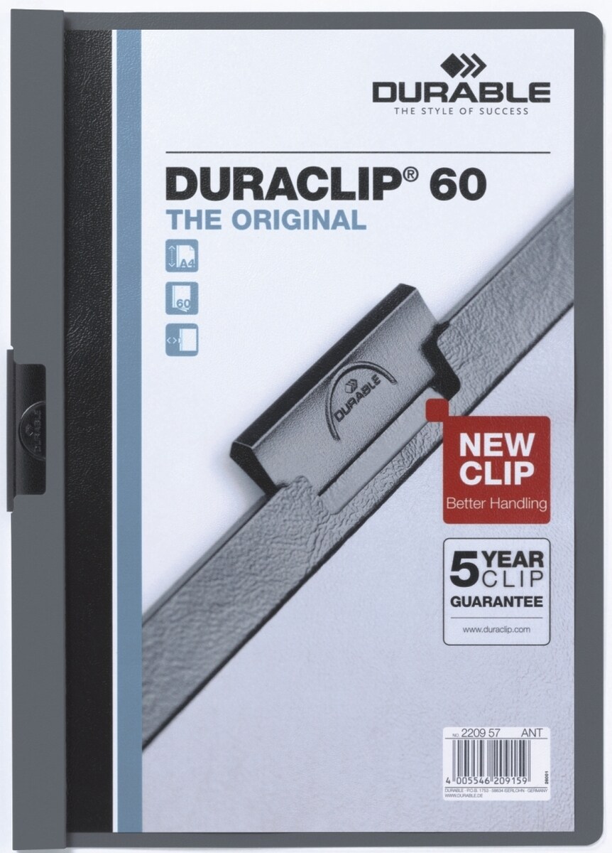 Durable Klemmmappe Duraclip Original 60 bis 60 Blatt A4 anthrazit/grau Packung mit 25 Stück