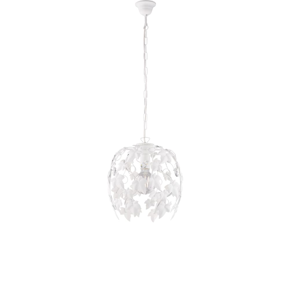 Lampadario Shabby Edera Ferro Battuto Bianco Con Foglie E Cristalli