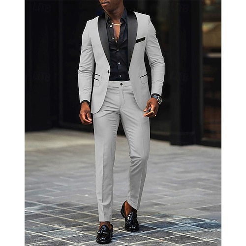 Per uomo Blazer pantaloni eleganti Blazer Completi Affari Cocktail party Ricevimento di matrimonio 2 pezzi Moda Casual Primavera Autunno Poliestere Blocco di colori Tasca Bottoni Confortevole