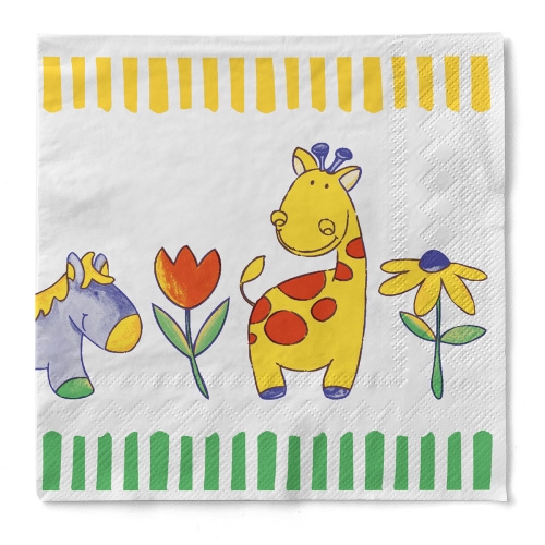 Sovie HORECA Serviette Bobby in weiß aus Tissue 33 x 33 cm, 100 Stück - Tiere Streifen Blumen Kinder Geburtstag
